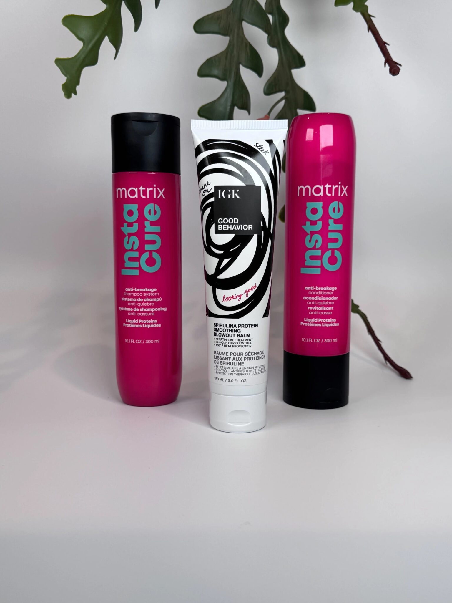 Transform your hair care routine with the Matrix Instacure Repair Kit + IGK Good Behavior Blowout Balm – the ultimate professional solution for damaged, fragile, or frizz-prone hair.