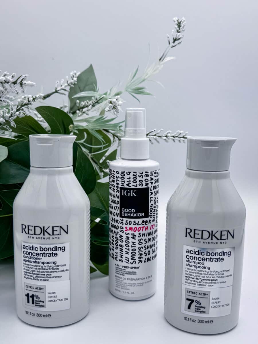The Redken Acidic Bonding Kit Canada is the ultimate 3-step repair and protection system designed for damaged, colour-treated and over-processed hair. This professional kit combines Redken’s best-selling Acidic Bonding Concentrate Shampoo and Conditioner with the IGK Good Behavior 4-in-1 Prep Spray, giving your hair a salon-quality transformation at home.